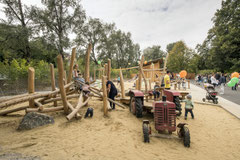 Im Spielbereich kann nach Herzenslust gespielt und geplanscht werden. Hier können Kinder die natürliche Gewässerdynamik erfahren, indem sie Bäche umleiten, stauen und